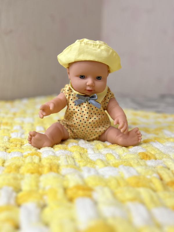 Пледы ручной работы, изготовлены из гипоаллергенной пряжи. Размер 85х85, материал полиэстер. Трехцветный желтый и розовый.