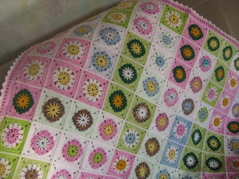 Детский плед связан из акрила. Квадратики, соединенные между собой. Размер изделия 100 см * 110 см.