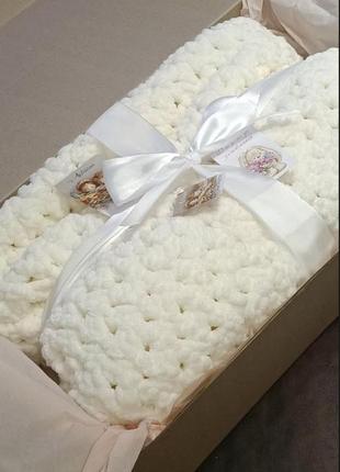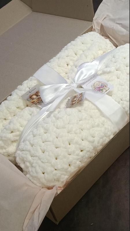 плетем детские пледы из гипоаллергенной пряжи на выписку, подарочная упаковка за наш счет, размер 90*95, узор плетёнка, стоимость 800 грн узор, цвет, размер по вашему желанию