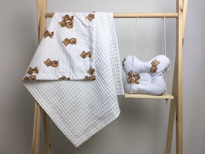 Набір плед з подушечкою для немовлят. Розмір пледа 75*87см , подушечка 27*24 см . Плед тканина піке підклад бязь , подушечка бязь наповнення холофайбер