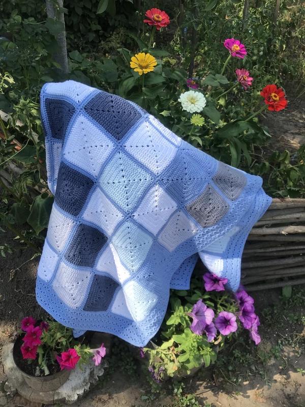 Розмір 115/115 Вага 880 г Склад: напівбавовна Виріб ручної роботи Плед вʼязаний гачком
