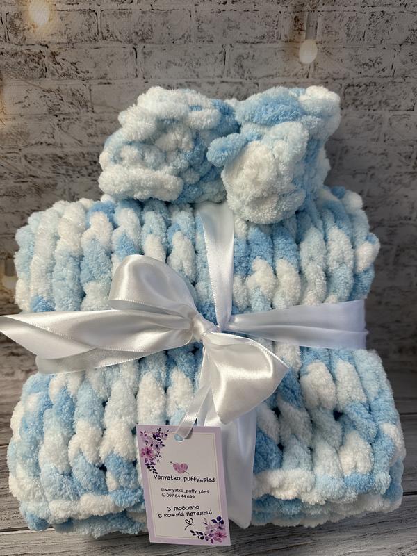 Пледик размером 80*80 см идеален для детской коляски или люльки. Пинетки в подарок