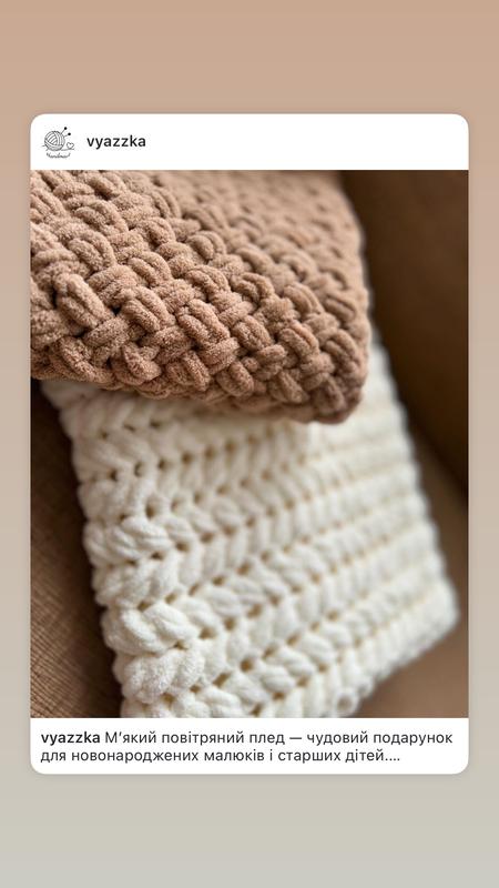 Гипоаллергенный плед из пряжи Ализе-пуфи. Виконаний узор - колосок. Размер 80*100