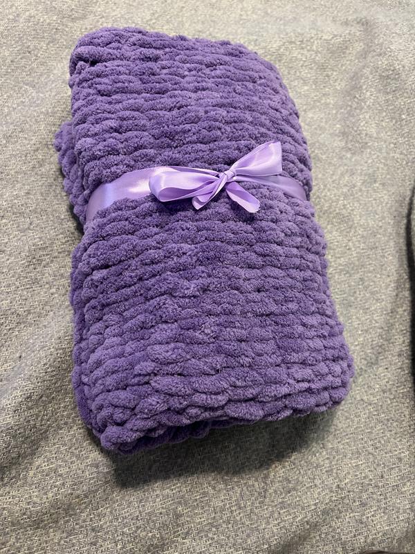 Очень мягенький😇, пряжа протиалергенна. Размер 75 ширина, длина 100