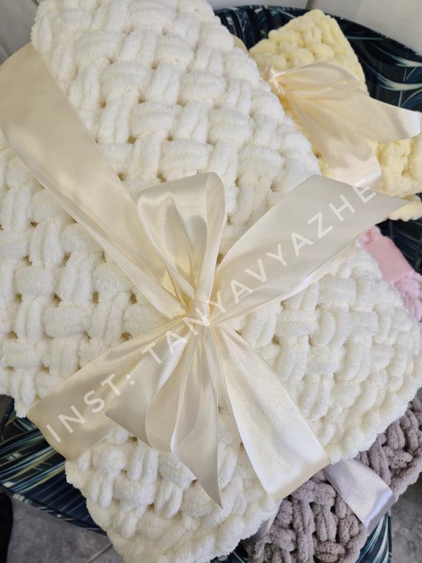 Плед одеяло для детей Ручная работа Пряжа Alize Puffy (Турция) Гипоаллергенная. Подходит для детей +0 Теплый, мягкий на ощупь