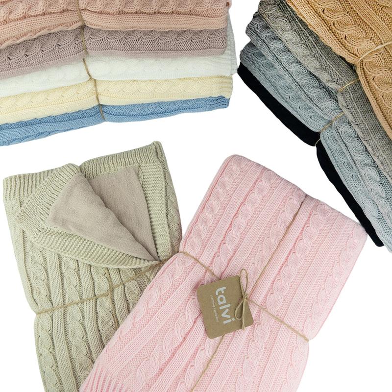 Вязаный детский плед из полушерстяной пряжи, утеплен флисом Отлично сохраняет тепло Размер 75*75см(допустимая разница +- 4 см) Основа - 50% шерсть, 50% акрил; подклад - 100% полиэстер (флис) UNISEX