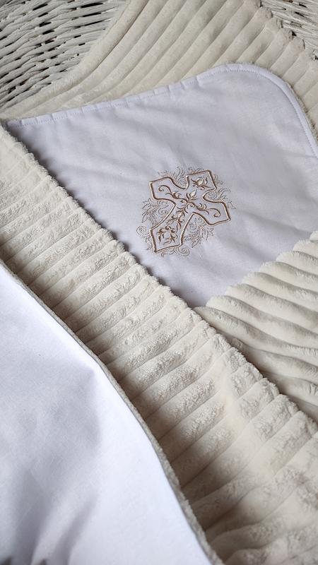 Крыжма без капюшона Тканини: плюш молочного кольору, бязь (бавовна) Размер: 80*100 см