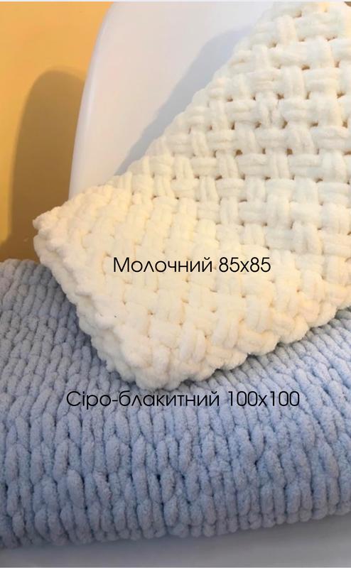 Плюшевые пледы ручной работы В наличии серо голубой и молочный Размеры 100х100 и 85х85 Также плету по заказу любые размеры и цвета Інстаграм ***********
