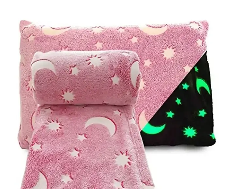 Описание Детское покрывало-плед со звездами светится в темноте размером 120×150 см Magic Blanket Светящаяся день-ночь в детскую коляску или кроватку 120х150 см светится в темноте, люминисцентный (накопитель света) плед светящийся со звездами – оригинальный подарок для ребенка. Удобный размер – под коляску или детскую кроватку, очень мягкая и приятная тактильно. Выполняет функцию ночника, ребенку не страшно засыпать под успокаивающее сияние звезд. После звезды постепенно меркнут. Светящиеся звездочки на пледе работают как накопитель – в светлое время накапливают частички света, а при настани темноты постепенно его отдают Светящийся компонент не содержит фосфора и других вредных веществ – в составе только органический люминофор. Светонакопитель люминофор обладает отличной стойкостью к воде и различным излучениям. Перезарядка практически не ограничена, абсолютно безопасна для здоровья людей и животных. Преимущества пледа: Мягкий и теплый плед подойдет и взрослым, и детям. Прекрасное украшение для любого дивана. Изделие сохраняет тепло и не сковывает движения, позволяя, закутавшись с головы до ног, заниматься любимыми делами. Плед станет незаменимым дома, в автомобиле, офисе или на природе. Отлично подойдет как детский ночник. Теперь дети не боятся засыпать в темноте. Ответная идея подарка на любой праздник или событие. Характеристики: Размер: 120х150 см Материал рисунков: Флуоресцентный плетеный. Материал пледа: полированная микрофибра. Ткань очень приятная на ощупь. Светящийся плед очень необычный в своем дизайне. Рисунки набирают силу от обычного света.