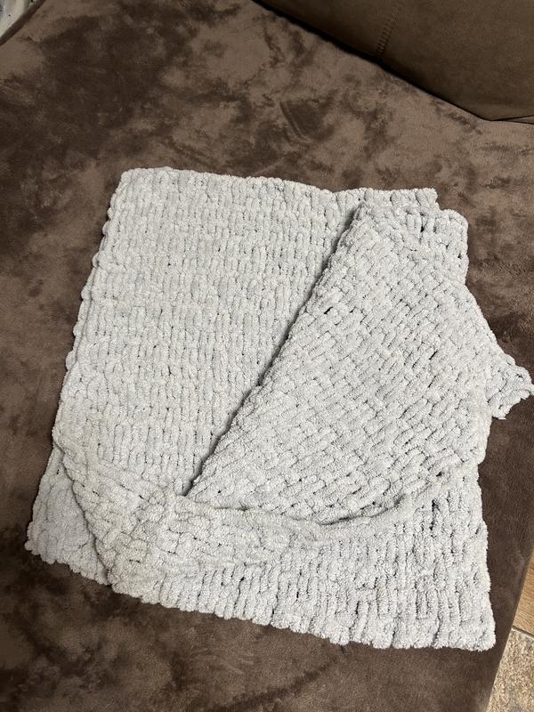 Очень мягкий плед ручной работы . В идеальном состоянии , цвет приглушенно голубой . Размеры 100*110 см