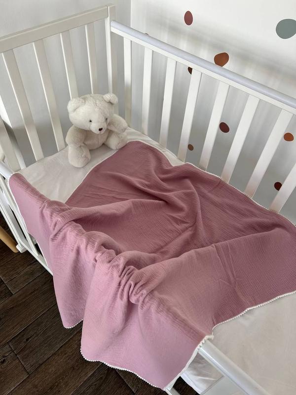 Плед Муслін У коляску та ліжечко Розмір 100*135 см Дрібні бубончики по всьому периметру