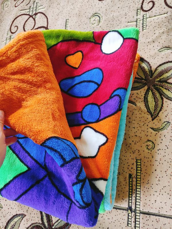 Детский плед, с ярким принтом. Цвет яркий. Состояние пледыка - новый. Без дефектов. Велюровый _детский пледик, имеющий мягкую ворсовую бархатную лицевую поверхность.По способу оформления ворса велюр может быть гладким, фасонным, тисненым и другими видами. Микрофибра – волокно, производимое из полиамида и полиэстера. Оно очень прочное, не смягчается и не линяет. мнется, хорошо держит форму, хорошо сохраняет тепло за счет высокой воздухоёмкости и обладает высокой износостойкостью. Микорфибра очень чувствительна к теплу. Необходимо стирать в теплой воде и гладить при низкой температуре. Белье из микрофибры можно стирать с помощью машинной и ручной стирки, однако температура воды должна быть не более 40 ° С: тонкая эластановая нить лопается от перегрева. Не отбеливают хлорным отбеливателем. Гладят при средней температуре, не превышающей 150°С. - не оставляет после себя волокон - не линяет -Не скатывается - жидкости не проникают внутрь волокна - Впитывает гораздо больше воды, чем обычная ткань - быстро высыхает после стирки. Замеры такие ширина132см, длина 139см. К пледику также детский рюкзак с мишкой продается за символическую цену 50 грн в красивом состоянии, одним заказом отправки.