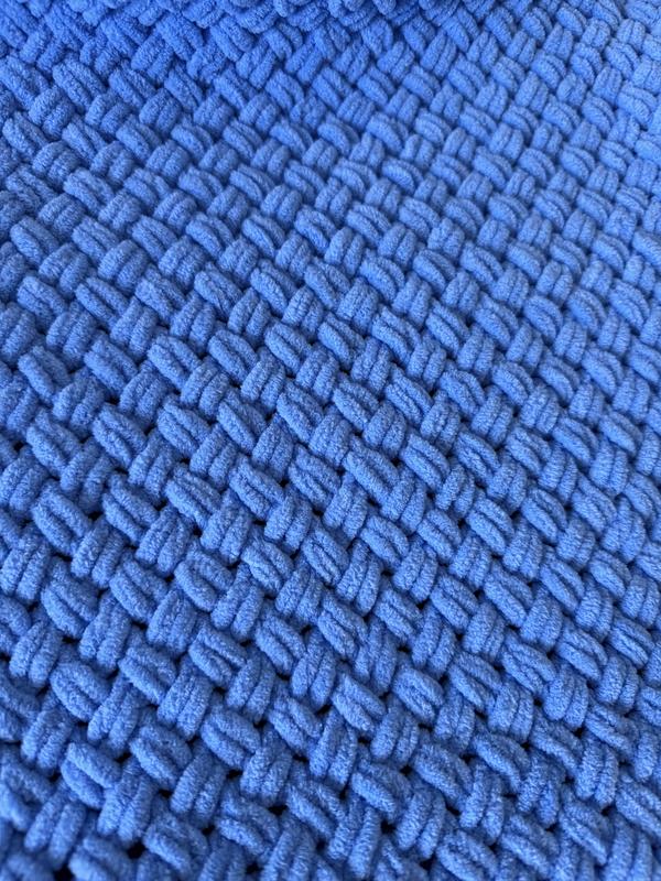 Детский вязаный плюшевый плед из пряжи Alize Puffy Fine. Ручной работы, мягкой и нежной. Размер 90х85 см (+/-3 см) Возможно исполнение в других цветах и размерах.