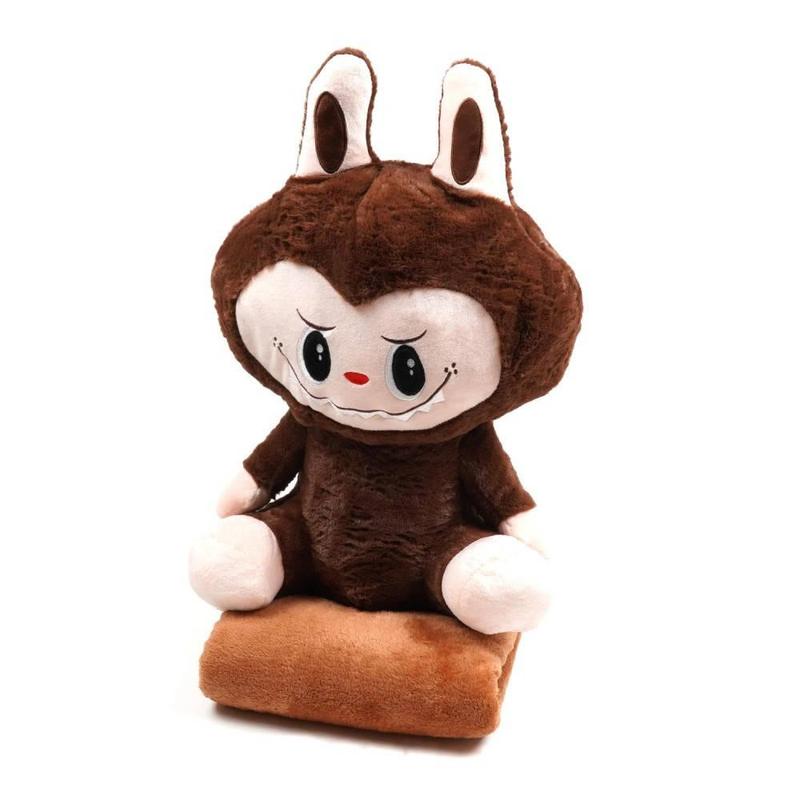 Милый и волшебный Лабубу содержит внутри нежный и мягкий плед, что делает его не только потрясающим подарком для малышей, но также практичным и удобным приспособлением для полноценного отдыха. Стоит отстегнуть застежку, как из игрушки появится уютное покрывало. Изделие размерами 100х150 см изготовлено из очень легкой ткани – микрофибры. Материал не провоцирует аллергических реакций и раздражений на чувствительной коже ребенка. Современный текстиль не выделяет токсичных веществ, обладает отличной воздухопроницаемостью и позволяет телу свободно «дышать», не провоцируя возникновение опрелостей. Одеяло отлично сохраняет тепло, не впитывает посторонние запахи и позволяет малышу чувствовать себя комфортно во время отдыха. Мягкое, гладкое и приятное на ощупь полотно легко стирается и быстро сохнет, не теряя первоначальной формы и насыщенности оттенка. Покрывало согреет малыша в прохладную погоду, его можно использовать для кроватки, коляски или автокресла. Очаровательная и дружелюбный игрушка послужит малышу в качестве подушки, а также развеселит его и настроит на позитивный лад.Размер пледа: 100х150 см Размер игрушки: 55х19х30см