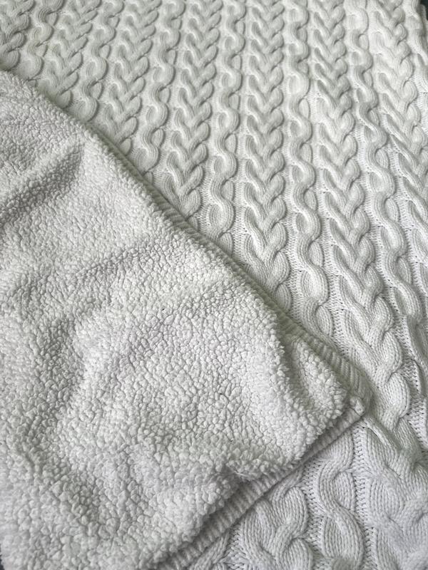 Дитячий вʼязаний плед з утепленням у білому кольорі Розмір 63*67 Матеріал вʼязаної частини 💯% бавовна, зворотня утеплена сторона поліестер. Без дефектів!
