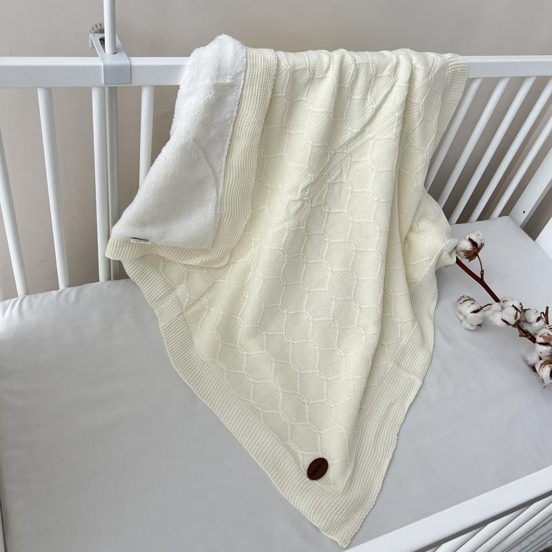 Плед вязаный – просто универсальная вещь, которая должна быть у каждого малыша. Во-первых, такой плед можно использовать в качестве конверта на выписку из роддома, поскольку выглядит он очень празднично. Во-вторых, он пригодится и в дальнейшем: его можно будет использовать как на прогулках, чтобы укрыть малыша, так и дома. Размер пледа: 90*80 см.
