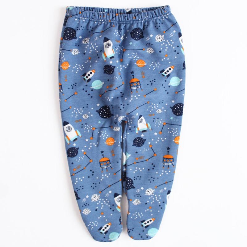 Ползунки детские теплые с начесом на резинку для новорожденных сини с рисунком. Изготовлены из футера (байка), хлопок 100%.
