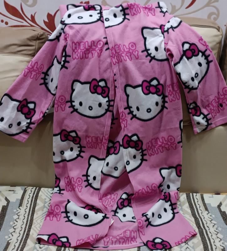 Плед-халат із написами та зображеннями Hello Kitty в чудовому стані. Колір: рожевий. Розмір: висота 120см, ширина - 110 см.