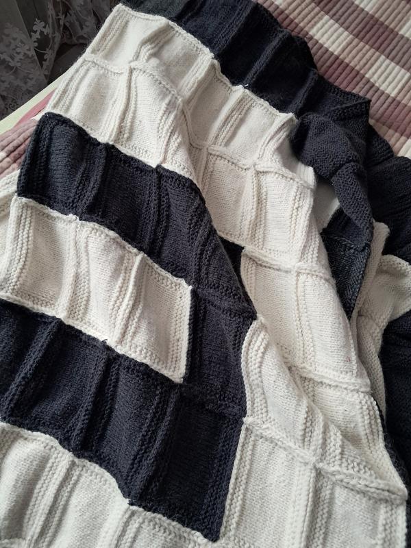 вязанное на спицами из различных отходов нитей,теплое тяжелое,размер 1.4* 2.1