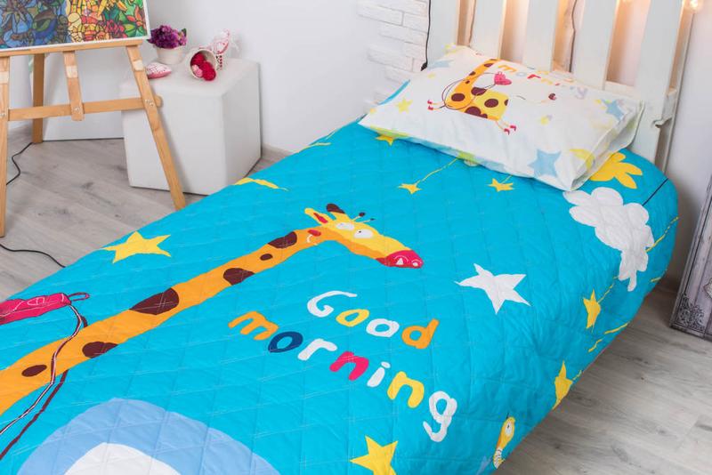 Стеганое натуральное покрывало для детей с прикольными животными