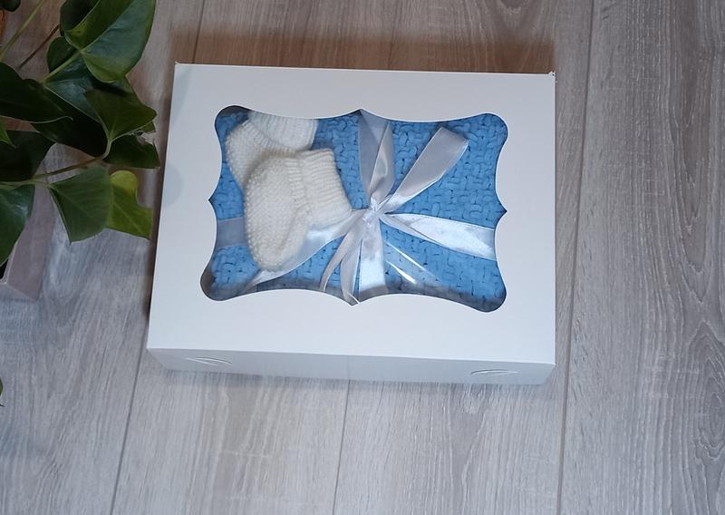 Очень нежный, мягкий плюшевый плед для малыша в кроватку или в коляску. Связан вручную из плюшевой пряжи. (Состав 100% микрополиэстер) Размер 80 см * 85 см Цвет нежно голубой. В комплекте белые пинетки (100% акрил) для новорожденного (длина стельки 8-9 см) Цена за комплект 370 грн Стирать можно как в машине при 30*С (лучше в мешке для стирки), так и вручную. После плед необходимо отжать в полотенце, сушить лучше горизонтально и когда высохнет достаточно распушить руками или мягкой щеткой, пряжа примет свой первоначальный вид.