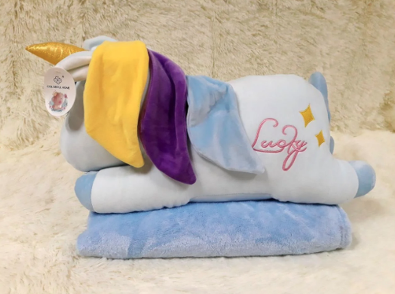 Мягкая игрушка плед единорог голубой 3в1