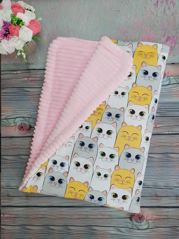 Плед из нежного плюша и хлопка, утеплён синтепоном . Также есть варианты летних пледов без утеплителя. Размер 97*77 см. Можно использовать как одеялко в кроватку, в коляску, а можно сложить как конверт на выписку. Ткань гипоаллергенна, а значит не вызывает раздражения, аллергию и прочие неприятные ощущения при контакте с кожей малыша.