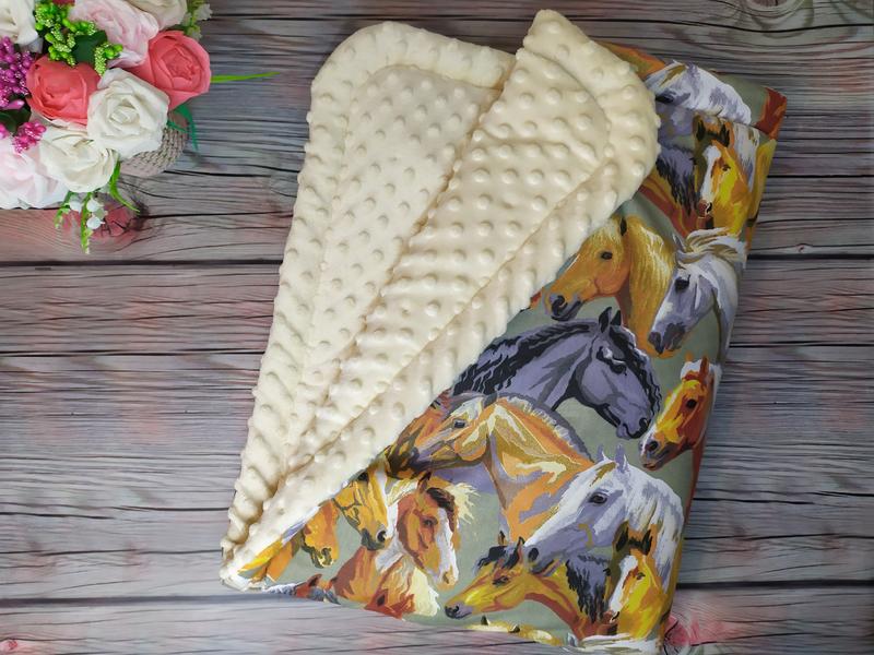 Тёплый плед для вашего малыша,утеплён синтепоном. Размер 77*95. Изготовлен из 100% хлопка и нежного плюша Minky. Много расцветок ярких и стильных.