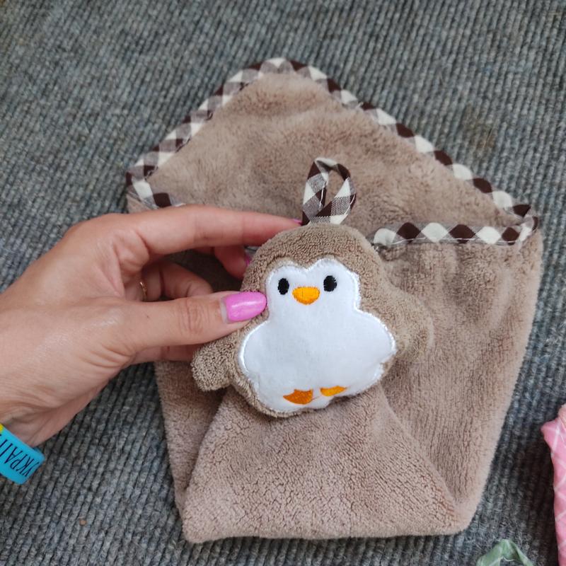 30*30 см Рушник з петелькою і оригінальною іграшкою пінгвін, який пришитий. Буде радувати дитину при кожному вмиванні. І заохочувати Ціна за штуку В наявності : Оливкові 5 шт Голубі 2 шт Коричневий 1 шт Рожеві 2 шт Мікрофібра Всі фото мої власні Відправлення Укрпошта, нова пошта