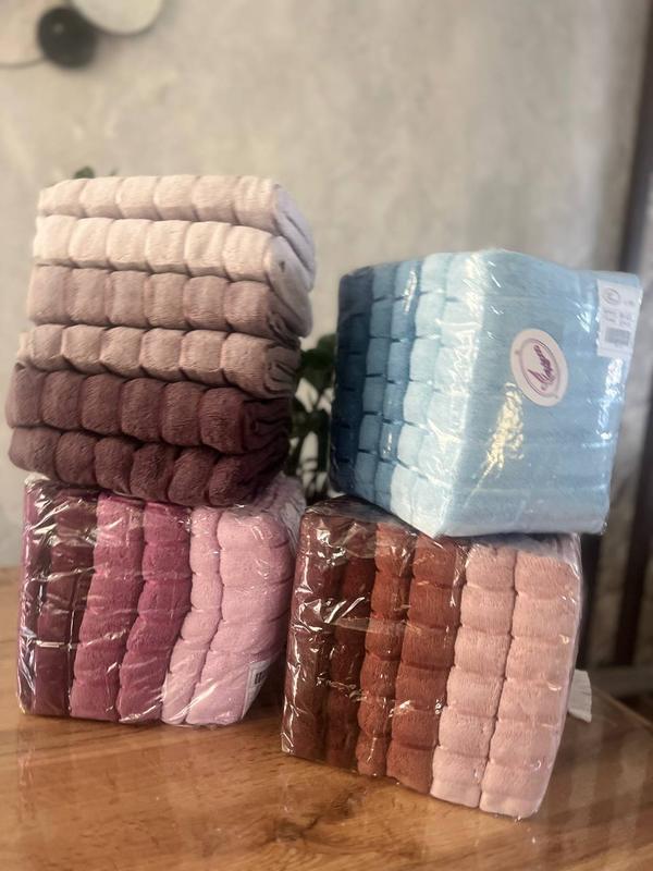 Полотенца Баня 140/70 6 шт 👛 1770 грн Метровые 100/50 6 шт 👛 970 грн Плотный густой ворс, качественная махра Кольори Фиолетовые - сирень Коричневые - шоколадные Серые - графитовые Сине- голубые Домашний текстиль