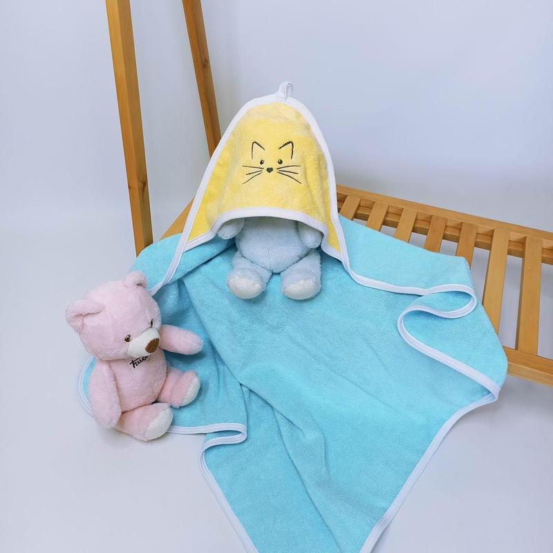 Махровое полотенце с капюшоном после купания для детей с вышивкой кошечка махра penetka 90...