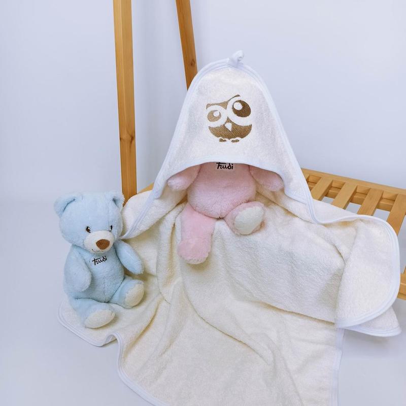 Махровое полотенце с капюшоном после купания для детей с вышивкой бежевое сова махра penet...