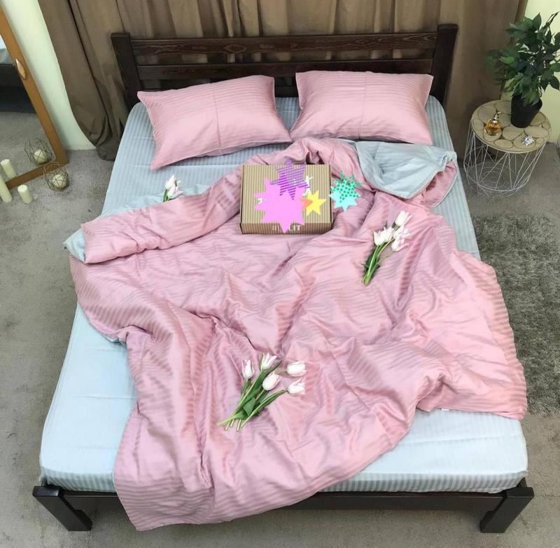 Полуторный комплект постельного белья " розовый, серый ", страйп сатин "виталина"