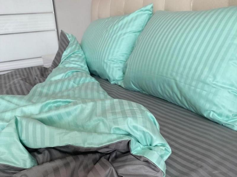 Полуторный комплект постельного белья " серый, бирюзовый, салатовый ", страйп сатин "витал...