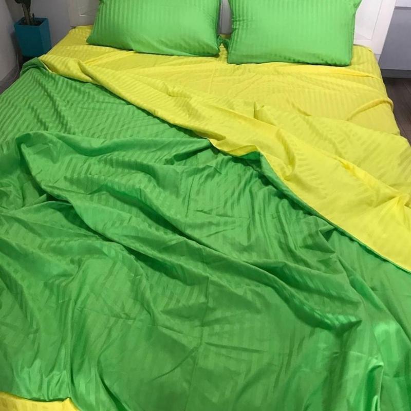 Евро комплект постельного белья " зеленый, желтый, салатовый ", страйп сатин "виталина"