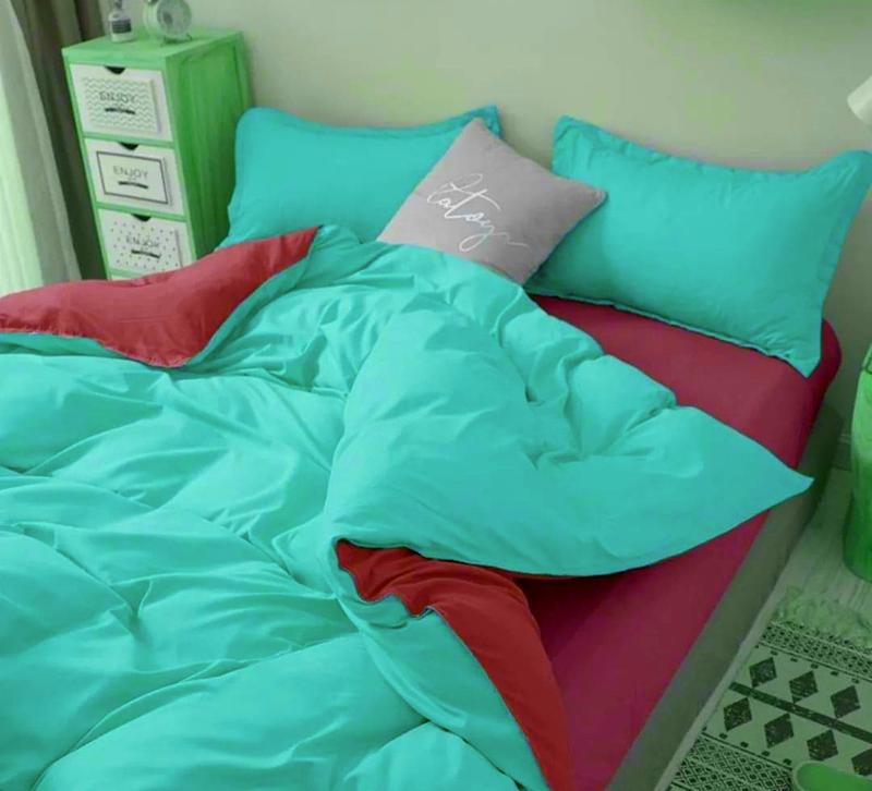 Двуспальный однотонный комплект постельного белья "красный, салатовый, бирюзовый", бязь го...