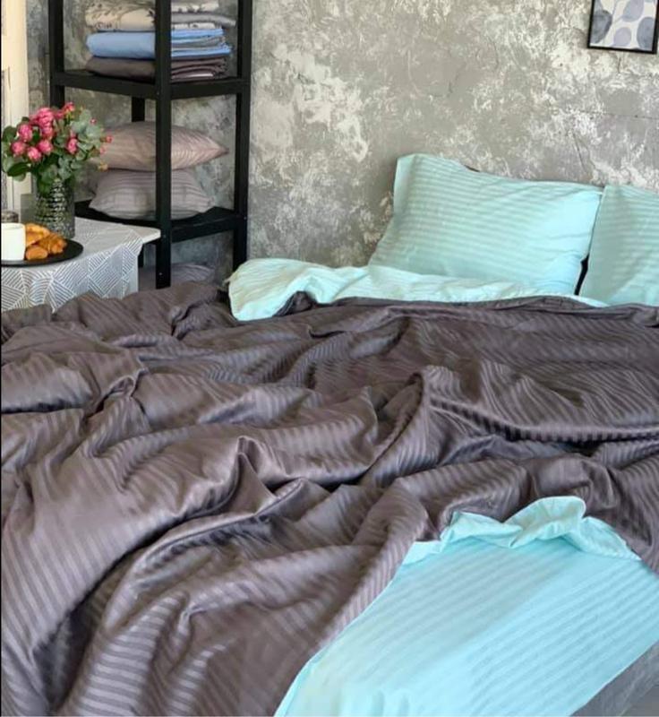Полуторный комплект постельного белья " бирюзовый, серый, салатовый ", страйп сатин "витал...