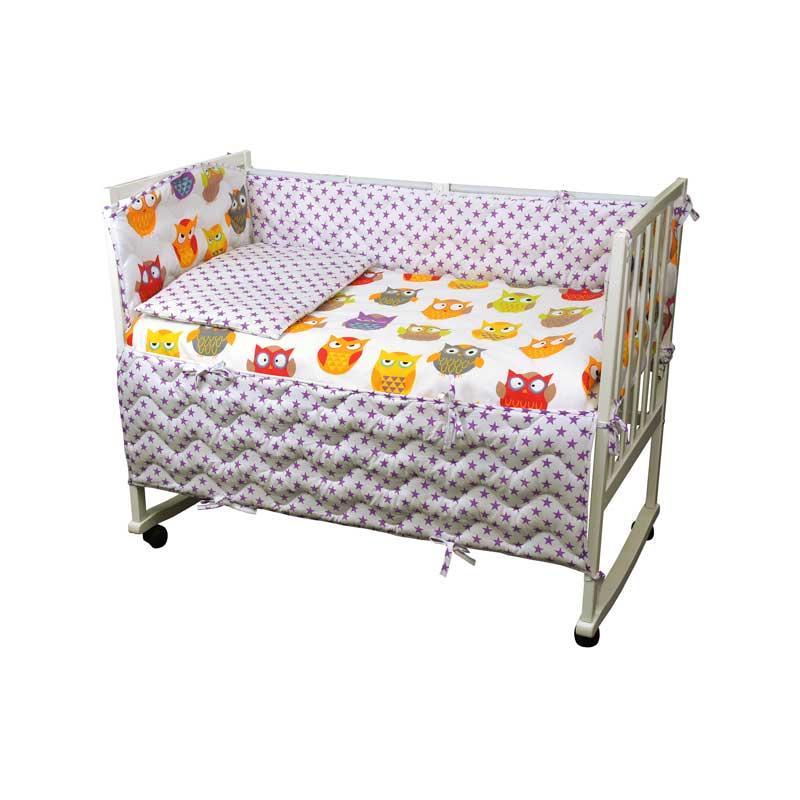 Описание Набор в детскую кровать 60х120 "Совы" КПБ в детскую кровать 60х120 "Совы" сатин набивной (хлопок 100%), плотность 110 г/м.кв пододеяльник на молнии 112х147 простынь на резинке 60х120х8 наволочка на молния 40х60 Ограждение защитное стеганое 360х39.наповнювач силиконизированное волокно, четыре отдельные части Сатин изготавливают из крученой хлопковой нити двойного плетения. Давно заметили, что чем больше скручена нить, тем ярче блеск. Так появился глянец - сатин, напоминающий шелк. Постельное белье из сатина долговечно и выдерживает большое количество стирки, а по своим качествам лишь немного уступает шелку, и только через достаточно долгое время материал начинает немного тускнеть. Сатин часто сравнивают с шелком, однако он дешевле, чем шелк, но дороже других хлопчатобумажных ткани, это золотая середина. С сатина делают белье разного дизайна для повседневного применения. Это оптимальный вариант по соотношению качества и цены.
