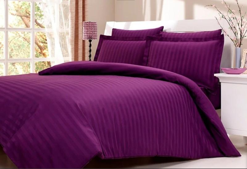 Постельное наборы 200х220 Евро размера однотонное в полоску, Евро постель сатин Страйп комплект Фиолетовый гипоаллергенное Хотите купить качественный антиаллергенный комплект постельного белья? Переходите в каталог: Постельное белье из страйп-сатина - это элитное белье, предназначенное для тех, кто ценит роскошь в сочетании с практичностью! Страйп-сатин -- одна из самых красивых, прочных и приятных телу тканей, изготовленных из натурального волокна. Двойное переплетение тончайших хлопковых нитей высших сортов, наделяет эту ткань особыми свойствами, придает ей блеск и глянец. Название ткани страйп-сатин происходит от английского слова "stripes", которое переводится как полосы. И это неспроста, так как страйп сатин представляет собой сатин с жаккардовым плетением. Именно жаккардовое плетение образует эффектный рисунок в виде полос, реже в виде прямоугольников или квадратов. Постельное белье из страйп-сатина очень прочное и износостойкое, что обеспечивается за счет высокой степени плотности плетения. Эта тонкая и изящная ткань и если соблюдать рекомендации производителя(стирать в стиральной машинке при макс. 40 град), то страйп-сатин не теряет своей цвет и хороший внешний вид. Очень легко гладится. Пододеяльник 200х220 ― 1 шт. Простынь 220х240 ― 1 шт. Наволочка 50х70 ― 2 шт. или наволочка 60х60 ― 2 шт. или наволочка 70х70 ― 2 шт. Полиэтиленовая упаковка. ВНИМАНИЕ! По стандарту, наволочки пошиты без «ушек-рюш» за пошив с ушками доплата 90 грн. Если нужна подарочная коробка, до цены + 90 грн. (скажите об этом менеджеру). Законом не предусмотрен возврат и обмен данного товара надлежащего качества: http:// https://zakon.rada.***********************************