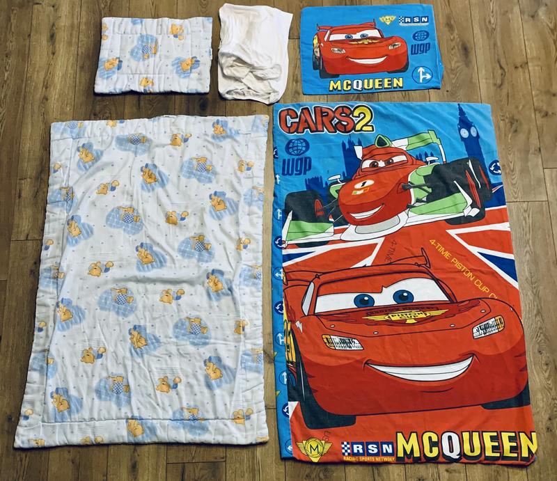 Disney Pixar Cars 100% Хлопковое постельное белье для детской кроватки Тачки Хорошее постельное белье с оригинальным мотивом из популярного мультсериала Тачки McQueen украсит каждую комнату. Кроме того, постельное белье вызовет улыбку не только на лицах детей. Приятный хлопок гарантирует комфортный и спокойный сон. Постельное белье имеет разный рисунок с каждой стороны. Постельное белье имеет сертификат качества Öko-Tex Standard 100. В комплект входят: 1 подушка на синтепоне 100% хлопок Bellino 1 одеяло на синтепоне 100% хлопок Bellino 1 наволочка с рисунком с обеих сторон 1 пододеяльник с разным рисунком с обеих сторон 1изнан белая на резинке 100% хлопок. Параметры и спецификация: Застежка: пуговицы Сказочный мотив: Тачки McQueen Цвет: красная/голубая Материал : 100 % бавовна Рекомендуемая стирка: 60 °C Размеры одеяла: 90 x 140 см Размеры подушки: 40 x 55 см Тип кровати: детская кроватка Очень красивый комплект. Ребенку точно понравится. Все легко стирается и очень мягкое и нежное.