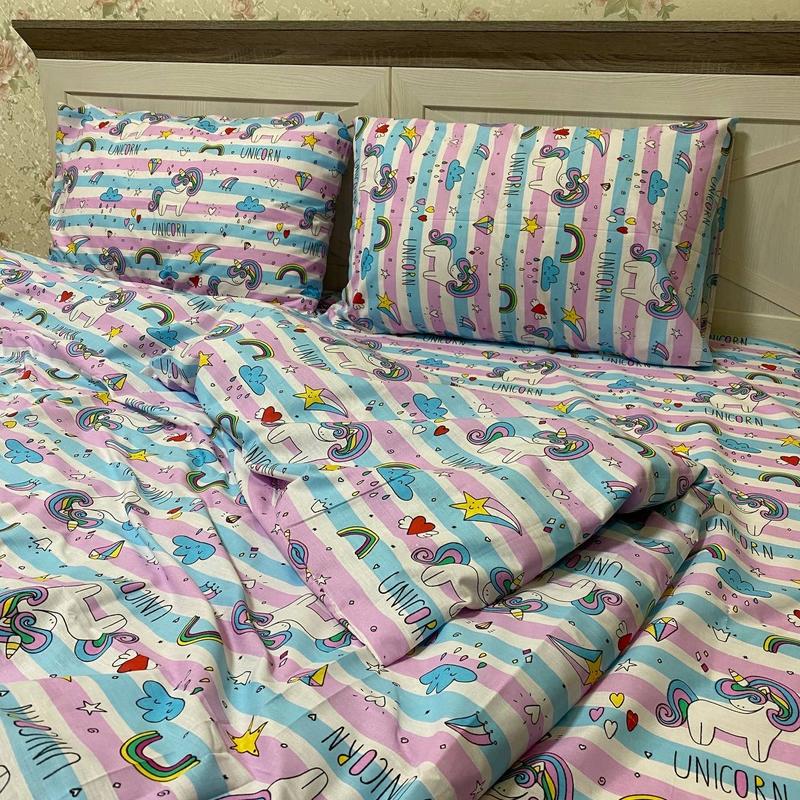 Постельный комплект для девочек «Юникикорн» Способ переплетения нитей - полотняный: они переплетаются крест-накрест. Поверхность материи – ровная и матовая на вид, одинаковая с обеих сторон.Ткань экологичная, гипоаллергенная, износостойкая. Хорошее качество👍: не линяет, не скатывается. 👉Возможен перешил наволочек и выбор простыни большего размера. 🛍🛍🛍 Полуторний комплект: 870грн 🔺простирадло➖145✖️220 🔺пододеяльник➖150✖️220 🔺наволочки➖2шт 70✖️70