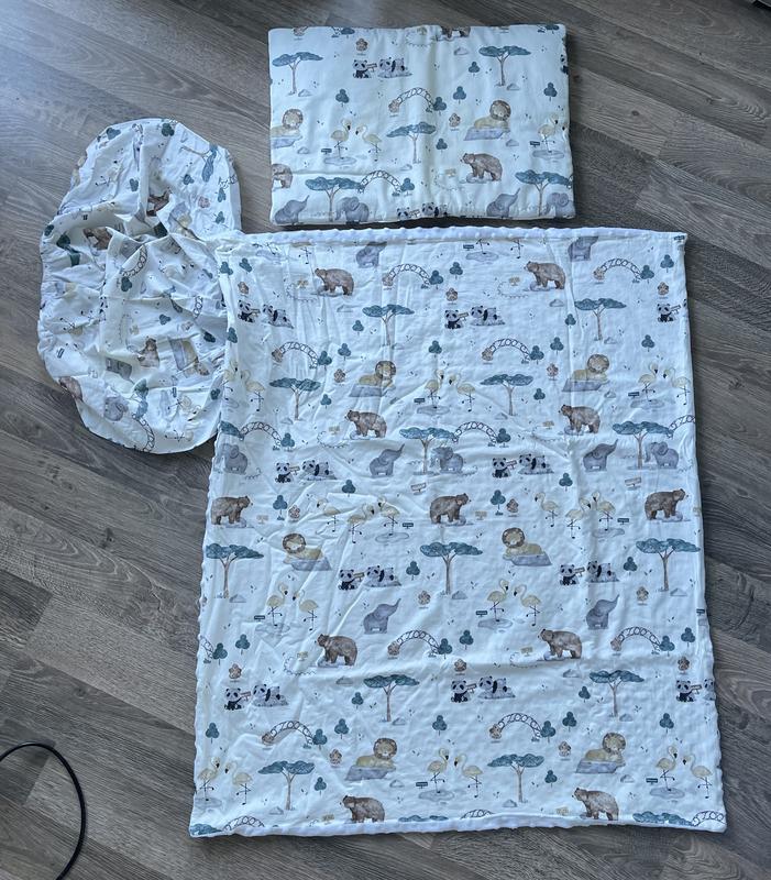 Продам комплект для тележка или в кроватку Простынь на резинке для люльки, плоская подушка, плед, который можно использовать как конверт на выписку Универсальный рисунок