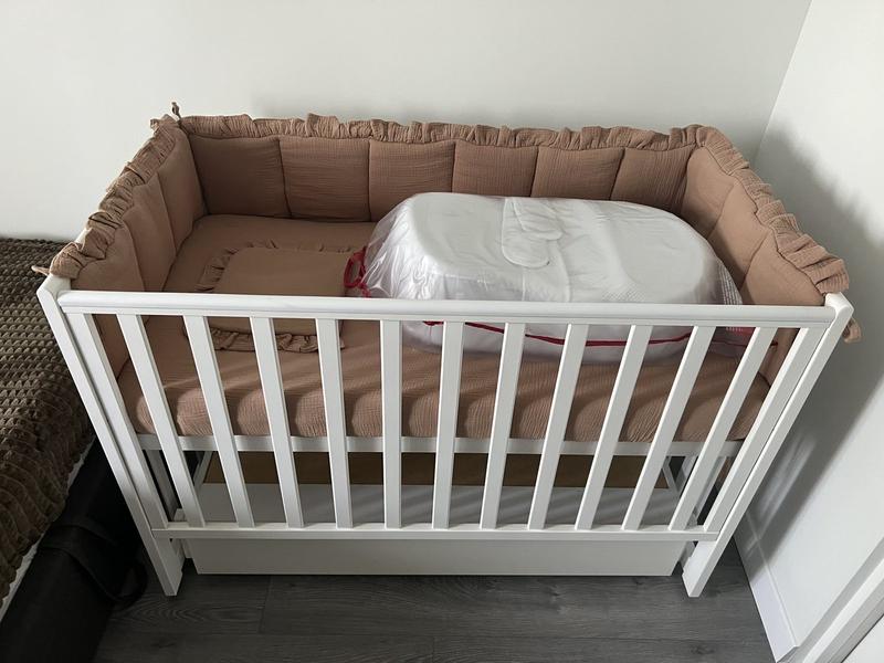 Бортики на 4 сторони Одеяло-конверт(с рюшей) Простынь из муслина на резинке Подушка для сна с рюшей Подходит на кроватку прямоугольной формы (60*120) и овальной формы.