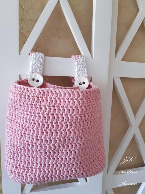 Интерьерная корзинка на кроватку или в удобном для вас месте дома. Ручная работа из хлопковой нити. Крепится на пуговицах. Размер 30х25 см. Можно заказать в другом цвете и размере. Срок изготовления 2-3 дня. Дополнительные характеристики: Материал : Хлопок Товар под заказ