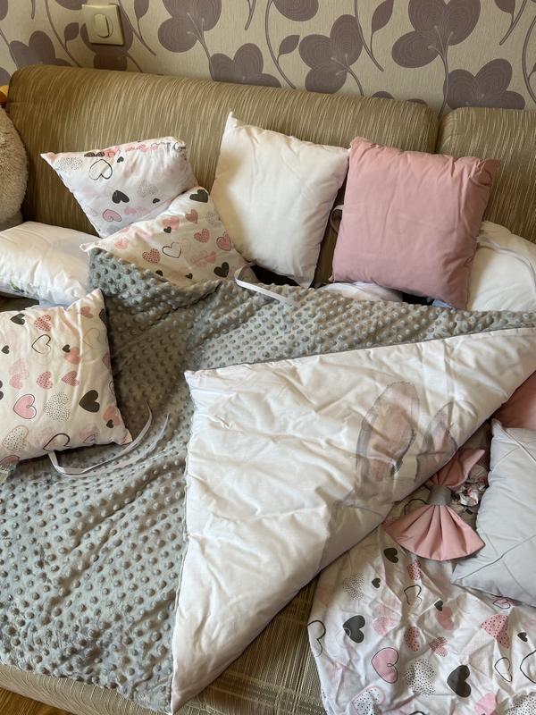 Набор постельного белья в детскую кровать : бортики из 12 подушек,одеяло, бантик на резинк...