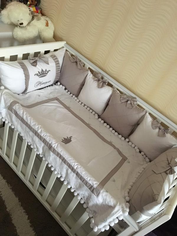 Комплект постілі та мʼяких бортиків-подушок у дитяче ліжечко, підійде і для дівчинки і для хлопчика біло-сірий. Шили комплект на замовлення, обійшовся весь комплект 150$, якісна тканина преміум сатин: 1) Постіль в ліжечко дитяче: - 2 простирадла біле та сіре на резинці, одне нове, - наволочка 2 шт(сатин, муслінова) - анатомічна подушка (можна в коляску ложити теж) - плюшевий плед з одіялком утепленим(можна на виписку в родом(є бантик святковий) коляску чи як ковдру використовувати). 2) Набір бортиків-подушок з люкс сатину на всі сторони(4 сторони) ліжка, стьобана стрічка. Звʼязуються між собою на бантики, всі чохли зйомні, тож легко прати, колір з одної сторони білий, з іншою сірий, можна ставити яким забажаєте кольором. Ми не знали до народження хто буде тому пошили універсальний колір, але народилась дівчинка, тому на одній з подушок вишивка Машулька є, можна перевернути, з іншої сторони напису немає. Всього 2 більших цільних подушки-бортика(біля голівки та ніжок) та 8 шт квадратних. Можна робити бортик на 3 сторони або на 4 за бажанням. Стан ідеальний, дитина майже не спала і ліжечку В нас було ліжечко від Верес Соня ЛД-13 розмір 60*120 см В подарунок віддам 2 муслінові пеленки білі в корони сірі, теж замовляли до комплекту.