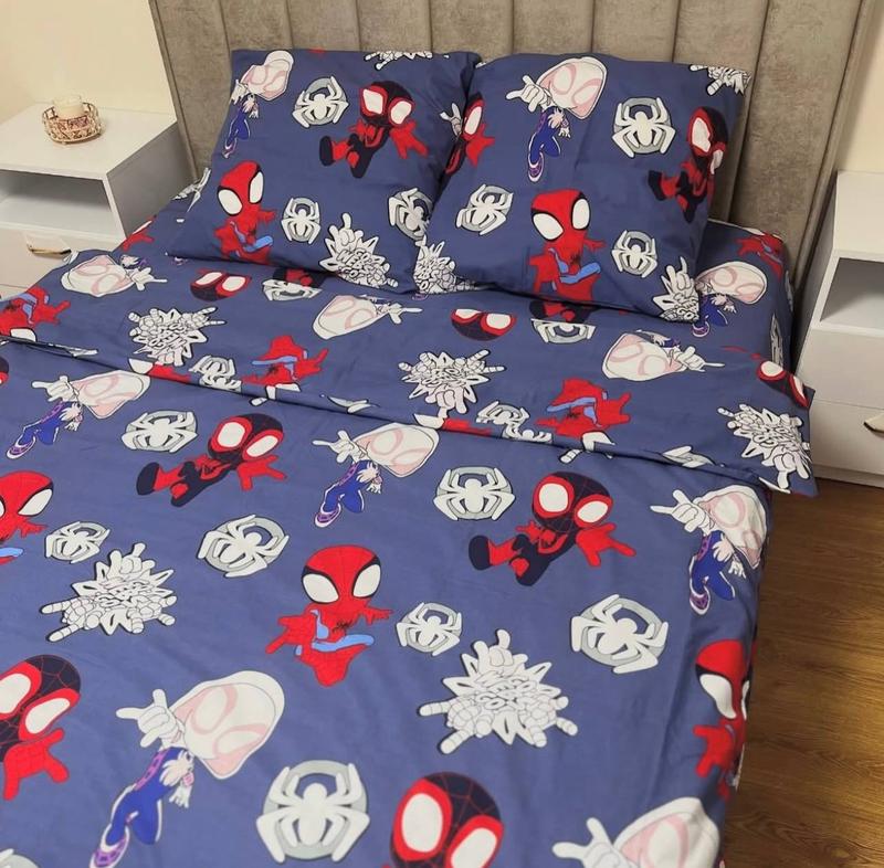 🌸Комплект постільної білизни Спайдер дитячий ✅️Півтораспальний 869 грн ✅️Двоспальний 999 грн ✅️Євро 1089 грн ✅️Сімейний 1394 грн 🌸Бязь – класика, яка поєднує практичність і комфорт! Натуральний склад – дбайливо до шкіри, безпечна для алергіків. Щільність і міцність – витримує численні прання, зберігаючи насиченість кольорів. Повітропроникність – забезпечує комфортний сон у будь-яку пору року. Приємна текстура – гладка і м’яка, приємна на дотик. Відправка Новою Поштою та Укр Поштою📦 Нова Пошта по повній оплаті на картку 💳 Укр Пошта по повній оплаті на картку 💳 Безпечна оплата тільки на Укр Пошту 😉 Перш ніж оформити автоматичне замовлення через кнопку КУПИТИ, напишіть мені та уточніть наявність потрібного вам товару 🙌 ❗️Тонкощі щодо пошиву комплекта з простирадлом на резинці - В комплектах постільної білизни можливий пошив простирадла на резинці - Послуга коштує 50 грн (за велике простирадло), та 50 грн пошив самої резинки, загалом 100 грн. ❗️В комплектах йде стандартний розмір наволочок 70×70 Перешив на наволочки 50×70 + 15 грн.