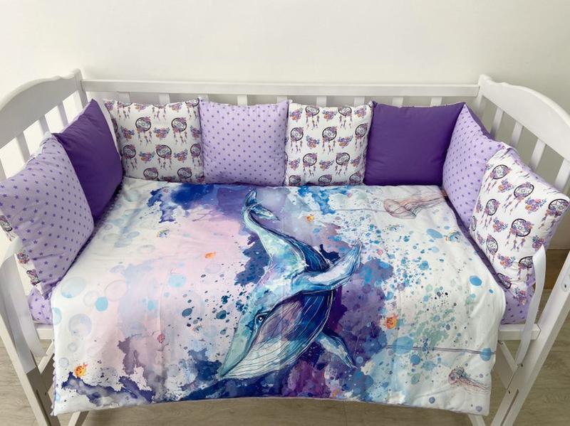 Два комплекти дитячої постільної білизни із захисними подушками та коконом + ковдра
