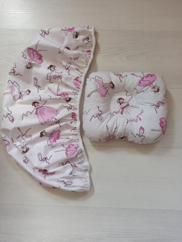 Набор в детскую коляску. Комплект состоит из 2 х предметов: Простынка на матрасик 80*40 предназначена для всех видов детских колясок. Подушка ортопедическая предназначена для поддержки шейного отдела и головки младенца. Состав:Польский хлопок 100%