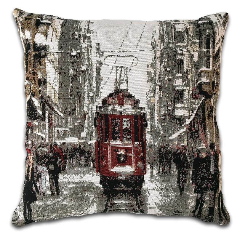 Гобеленовая наволочка с изображением трамвайчика на городской площади украсит любой интерьер.Наволочка имеет потайную молнию. Разложив подушки на диване или креслах вы сможете кардинально изменить внешний вид не только вашей комнаты, но и создать определленную атмосферу для отдыха или просто поднять себе настроение!!!